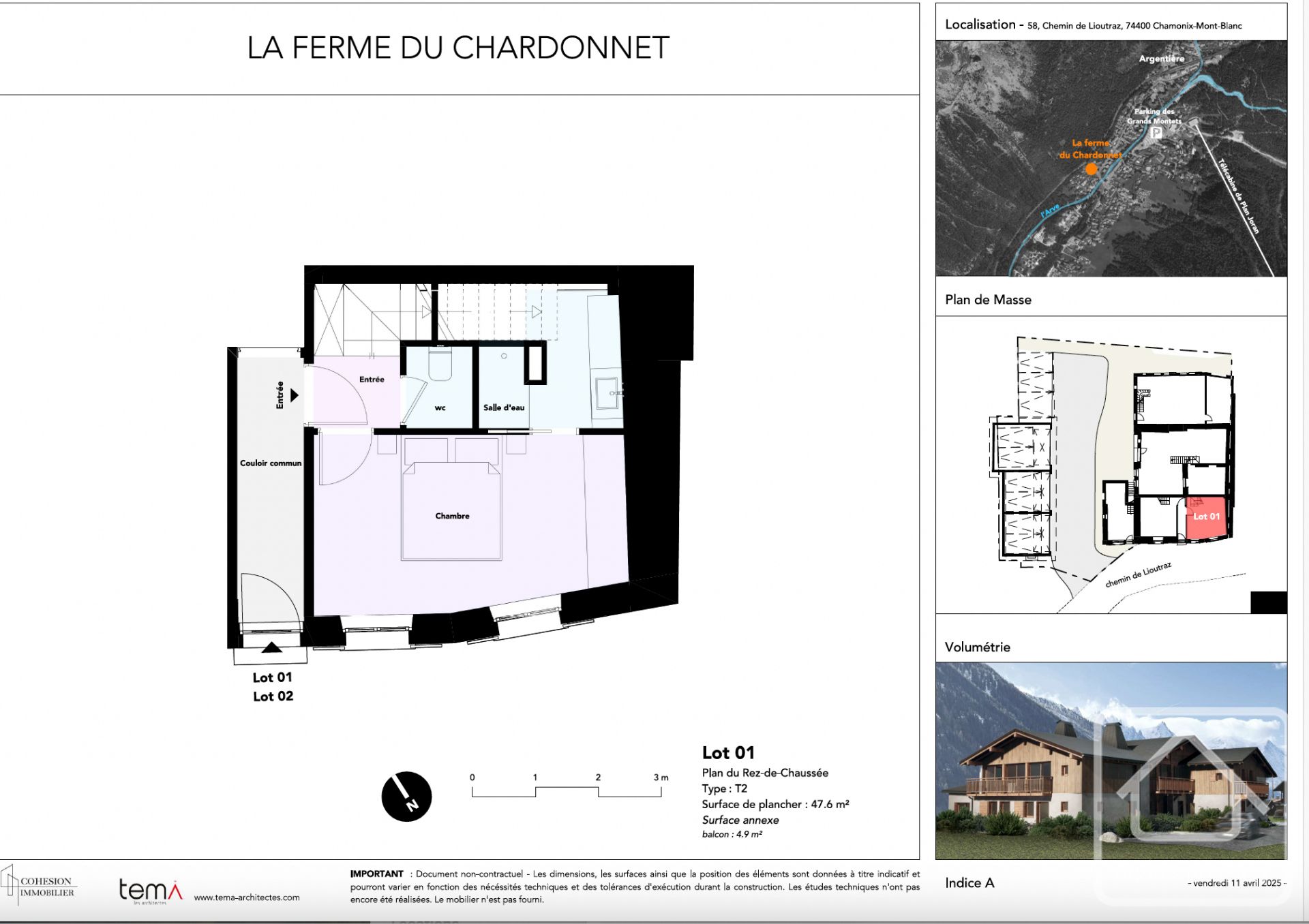 Possibilité d’acheter les lots 1 et 2 afin de créer un vaste appartement de trois chambres avec balcon offrant une vue directe sur le Mont-Blanc !