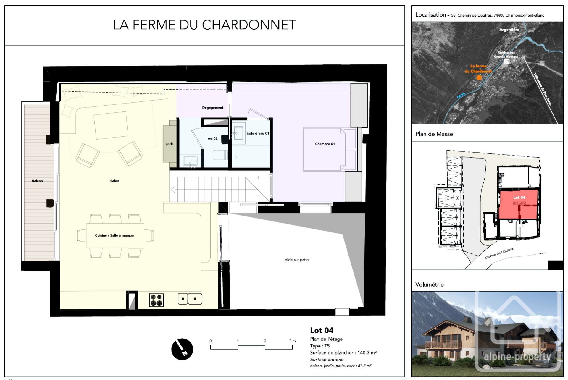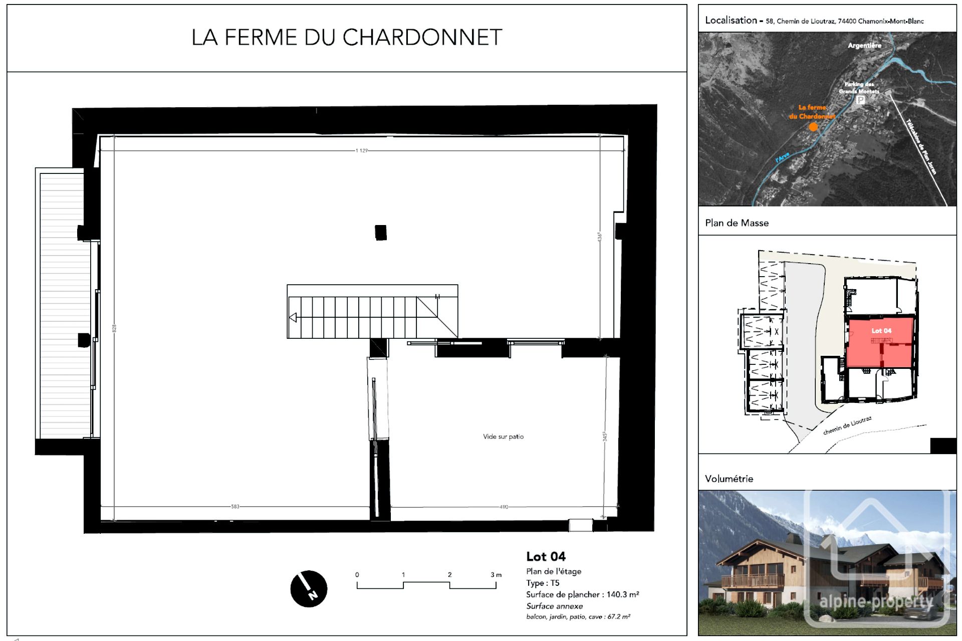 Créez votre maison alpine idéale à Argentière — un duplex brut de 140 m² à deux pas des pistes des Grands Montets, avec cour intérieure privative et balcon orienté ouest, à 1 h 15 de Genève et 15 minutes de la frontière suisse.