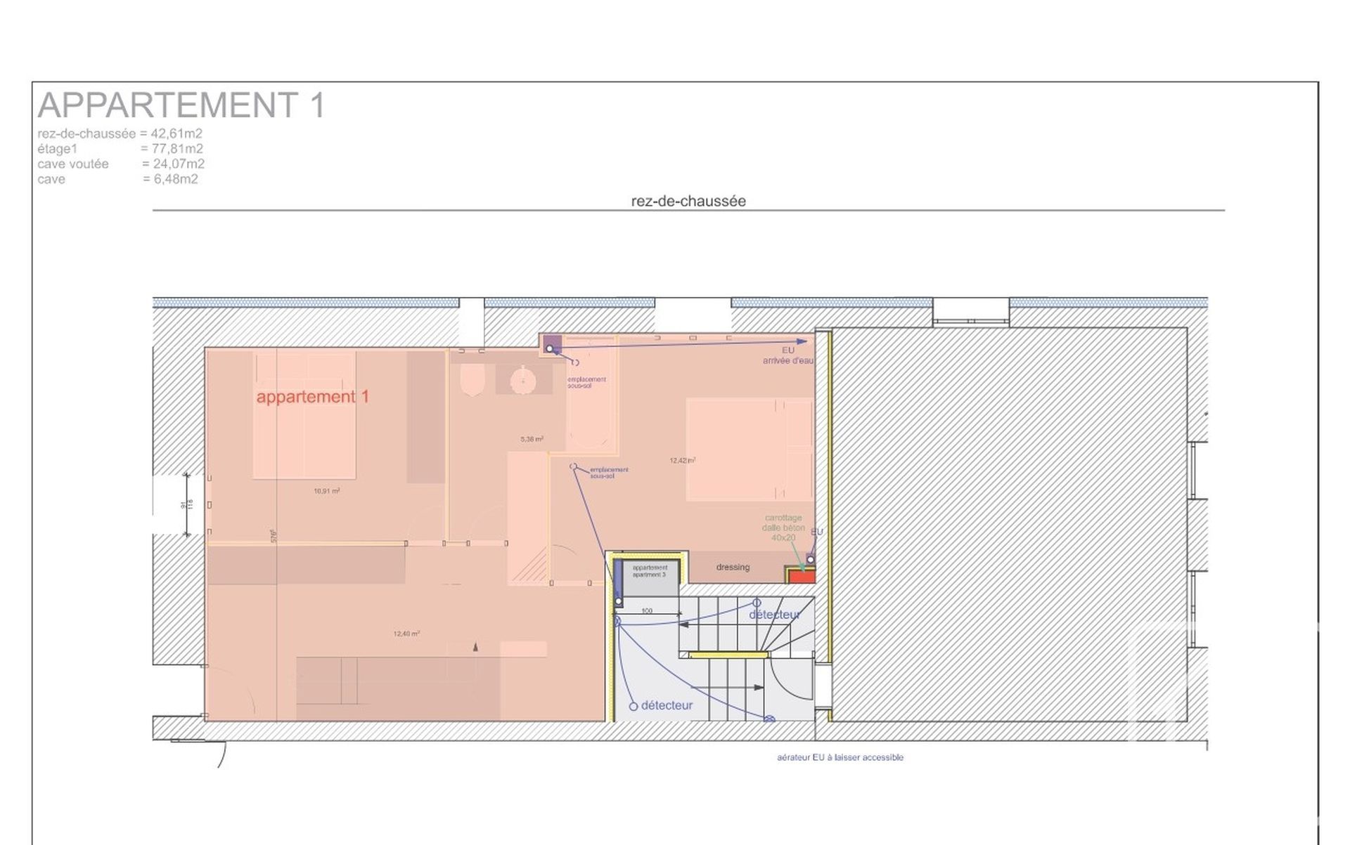 Rez-de-chaussée (suggestion promoteur) : 2 chambres avec dressings + salle de bains