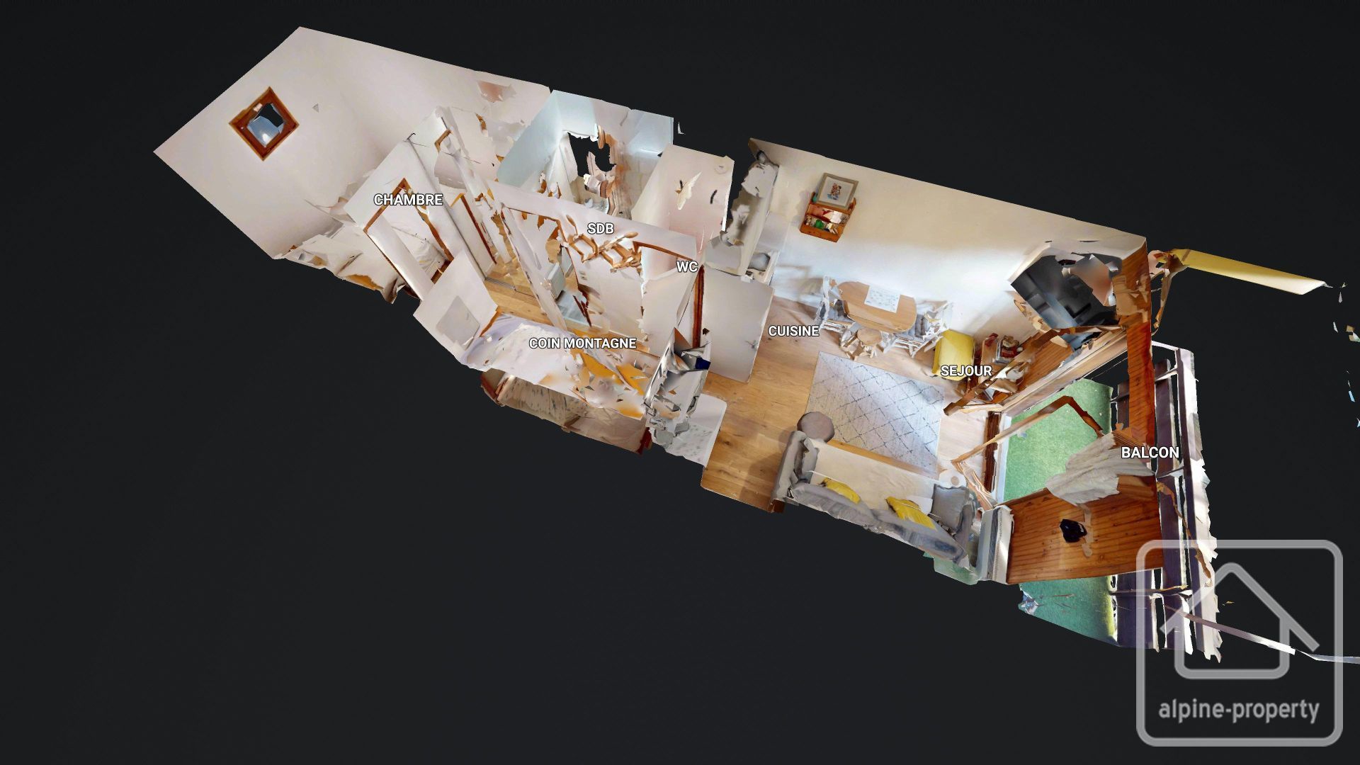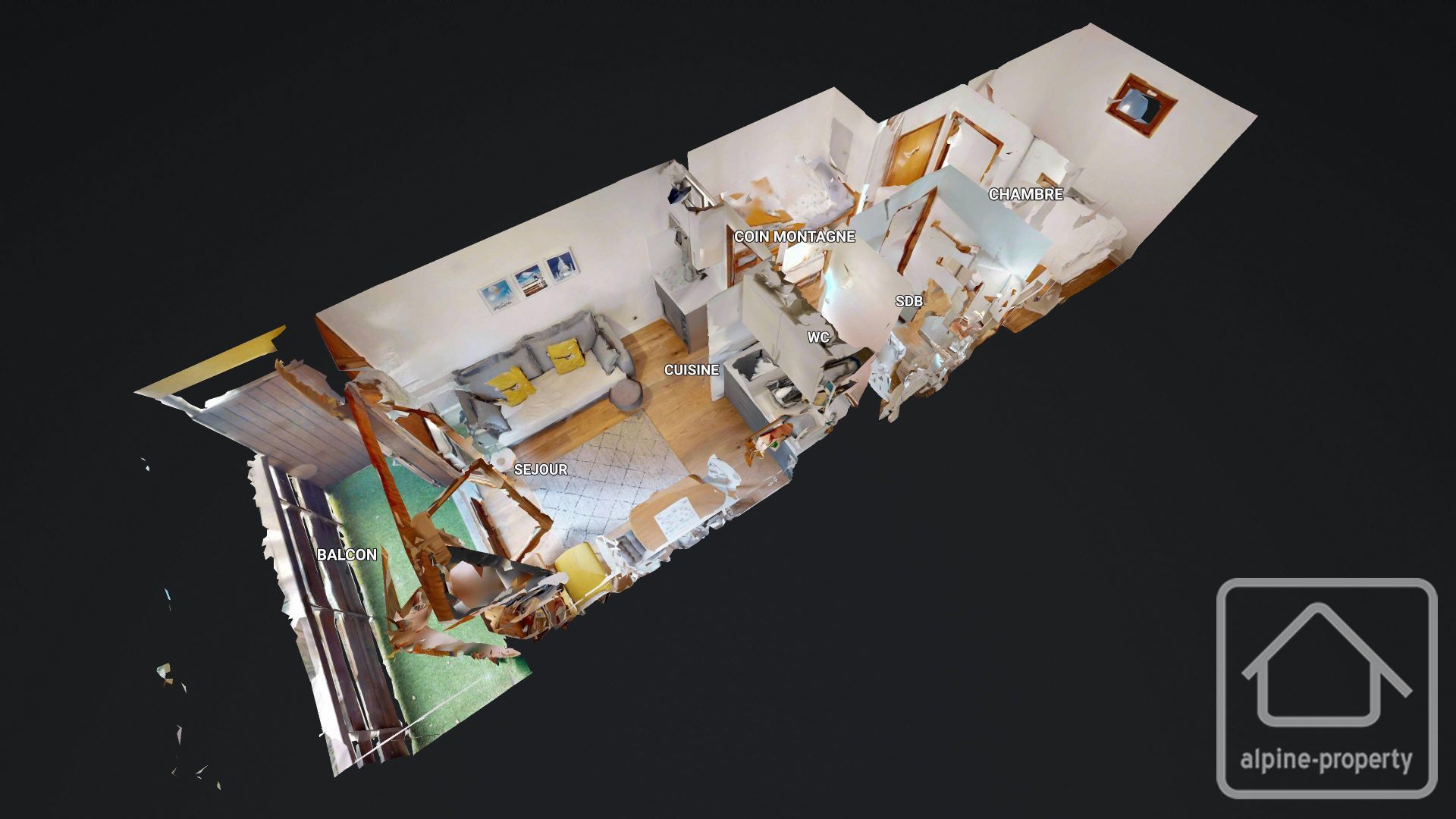 L’appartement est en excellent état et se compose d’une entrée avec des lits superposés dans le coin montagne, d’un séjour/salle à manger avec kitchenette ouverte et d’un balcon offrant une vue sur le village, d’une chambre double, d’une salle de bains et de toilettes séparées.