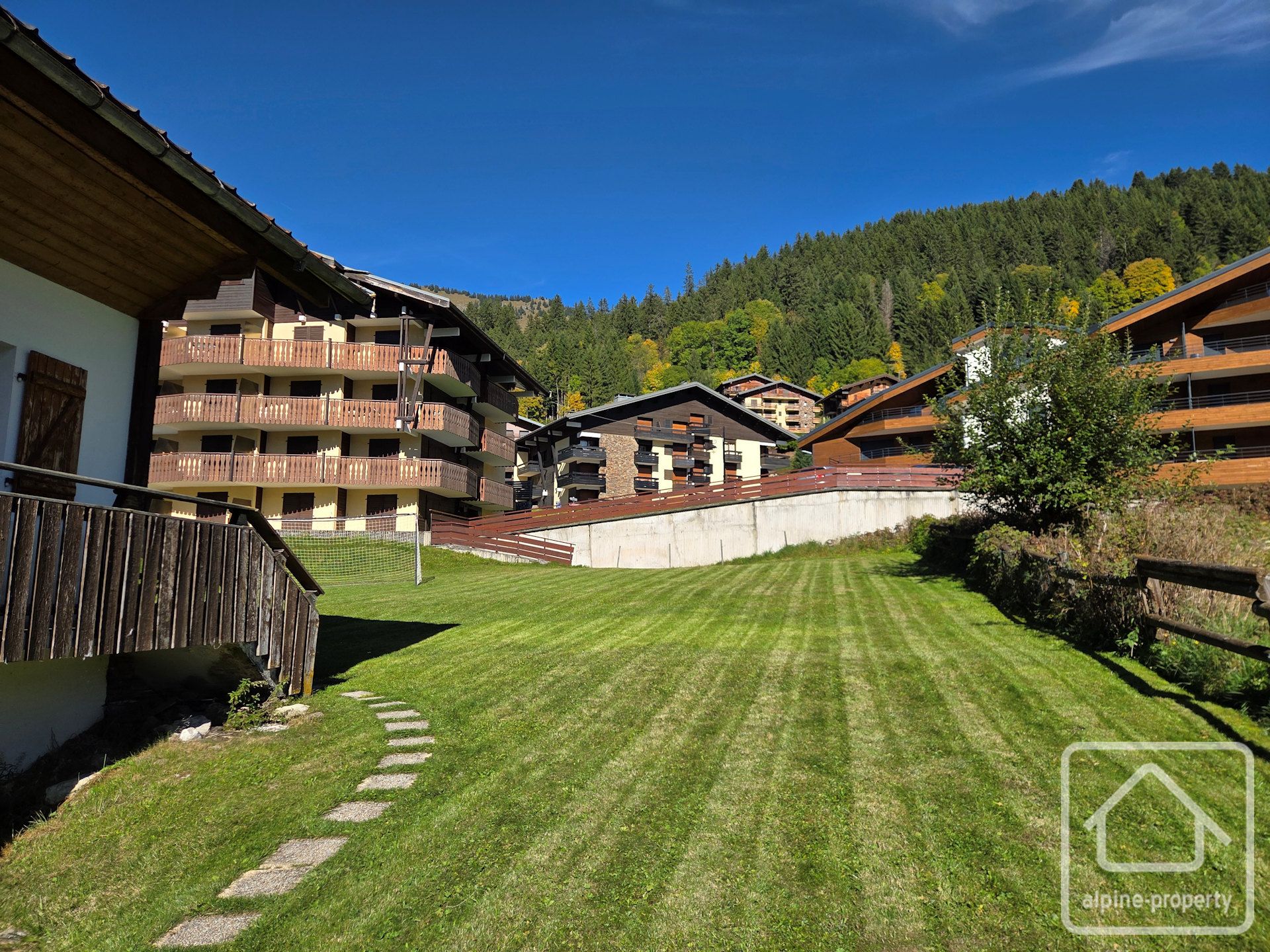 Le terrain comprend actuellement un ancien chalet datant des années 1960, mais ce qui le rend particulièrement intéressant est le permis de construire accordé pour la réalisation d’un grand chalet de luxe d’environ 300 m².