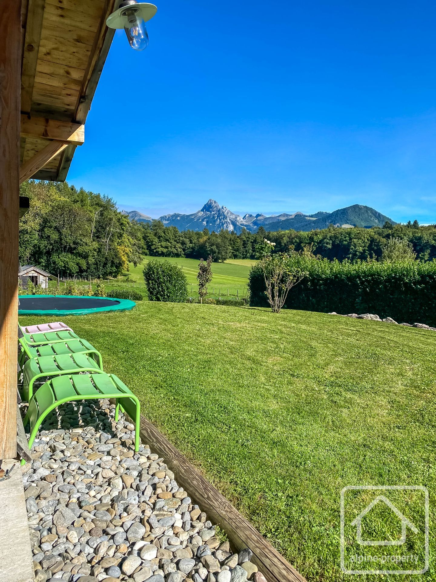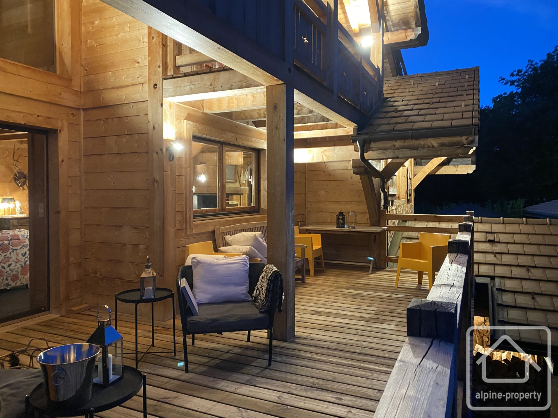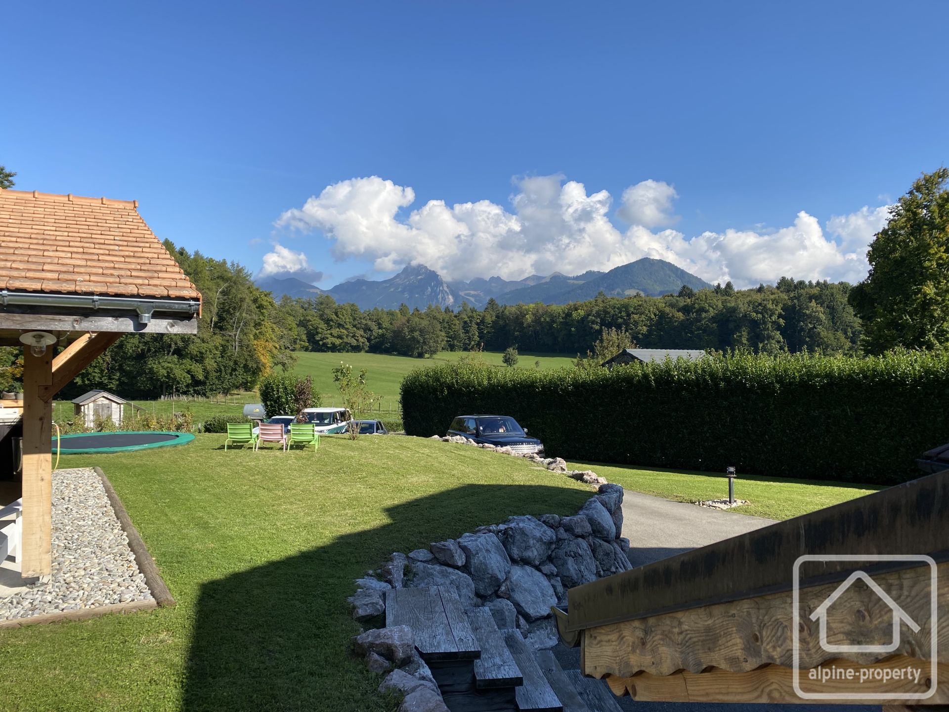 À l’extérieur : le chalet est implanté dans un agréable jardin paysager avec cuisine d’été et piscine chauffée par pompe à chaleur.