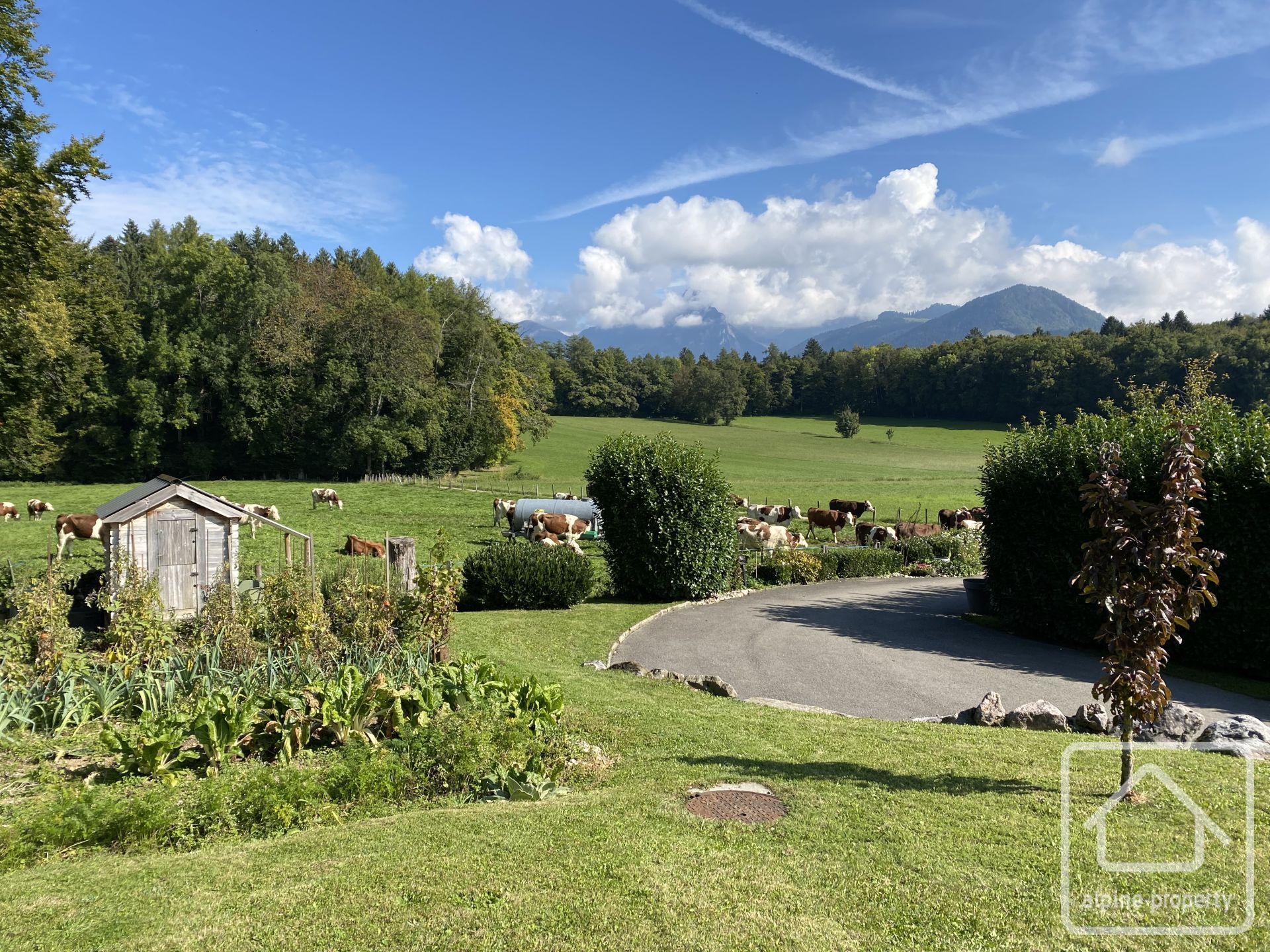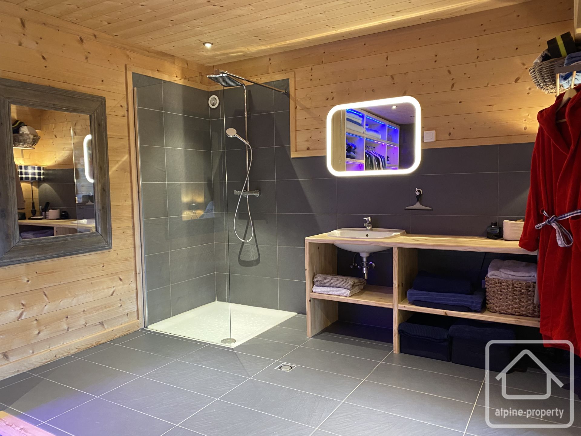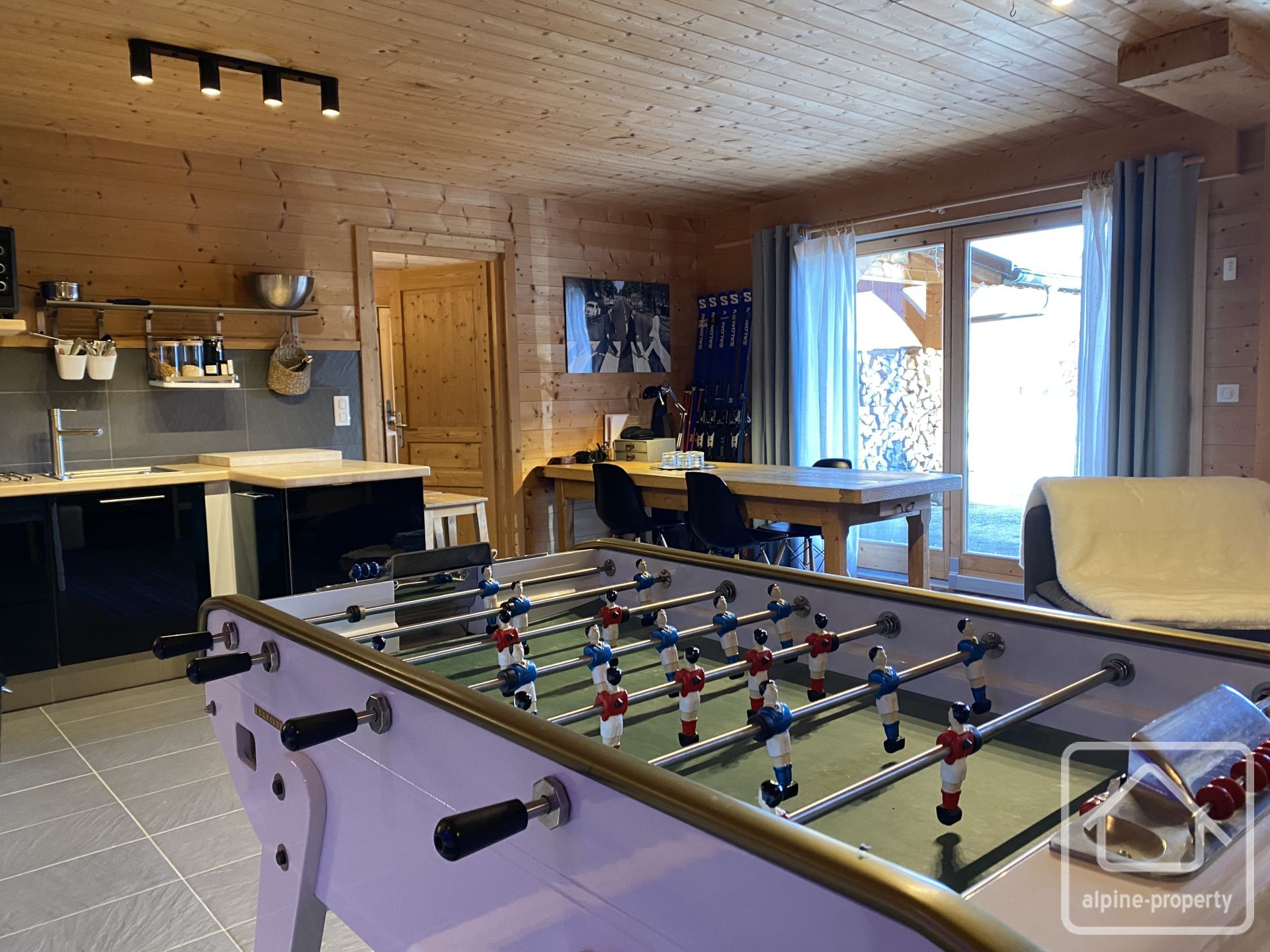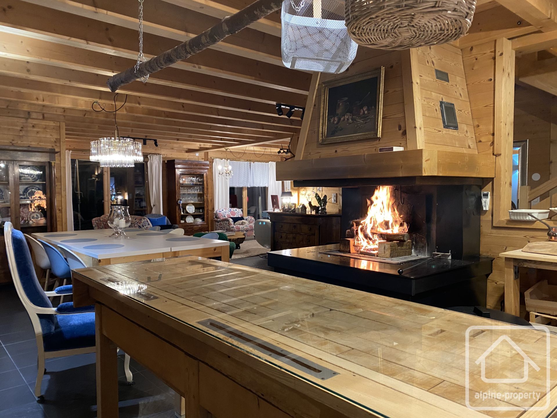 À l’extérieur : le chalet est implanté dans un agréable jardin paysager avec cuisine d’été et piscine chauffée par pompe à chaleur.
