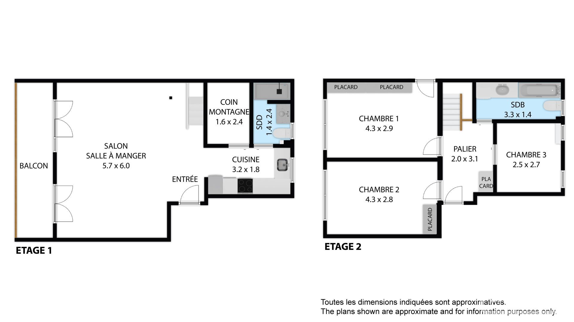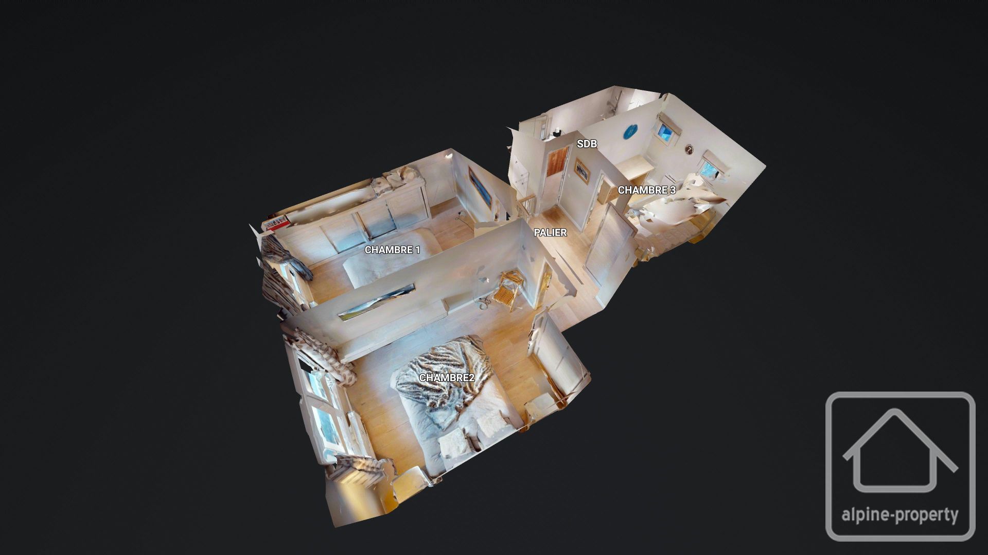 • Étage : L'espace nuit se compose de deux belles chambres avec placards intégrés, d'une chambre cabine avec lits superposés et d'une salle de bain indépendante avec WC.