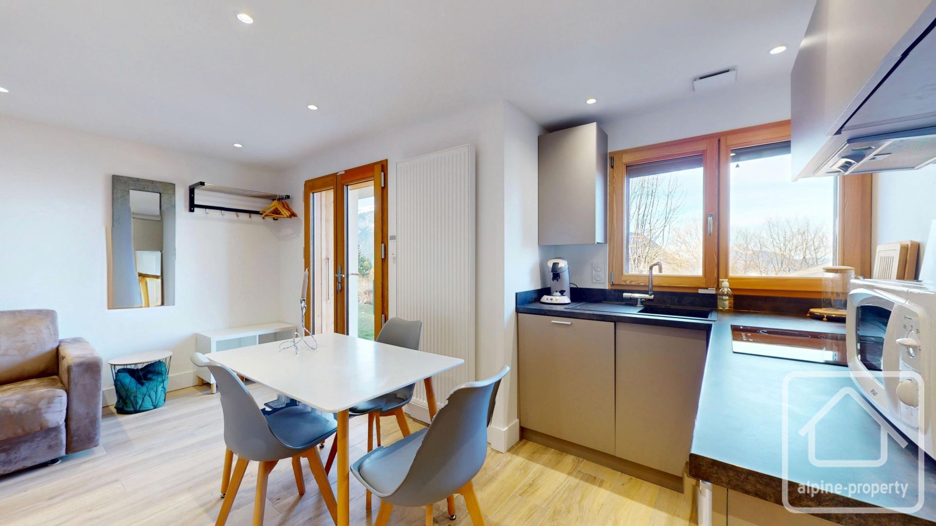 • Une lumière exceptionnelle et des vues spectaculaires : La rénovation a mis l'accent sur la luminosité. Dès le rez-de-chaussée, les nombreuses ouvertures permettent à la lumière naturelle d’inonder la pièce de vie et la baie vitrée s'ouvre sur un des atouts majeurs du chalet : une grande terrasse exposée Sud/Ouest. Cet espace est une invitation à la contemplation, offrant un panorama incroyable sur la majestueuse chaîne des Aravis, la vallée et le Môle.