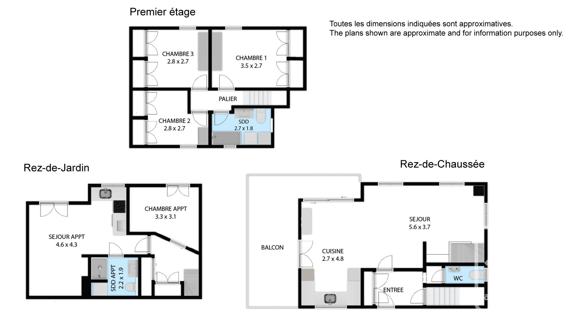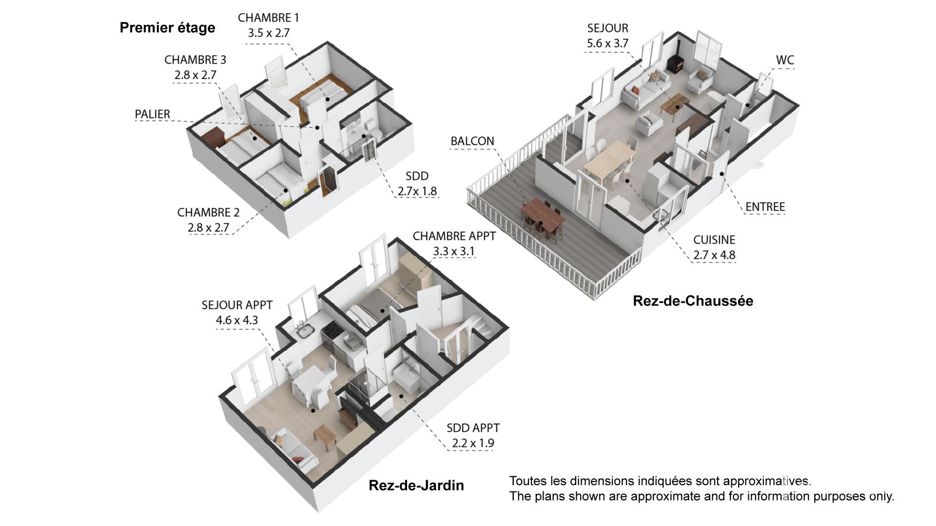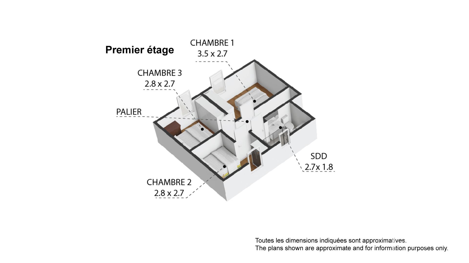 • Étage (Espace Nuit) : Trois chambres et une salle de bain rénovée.
