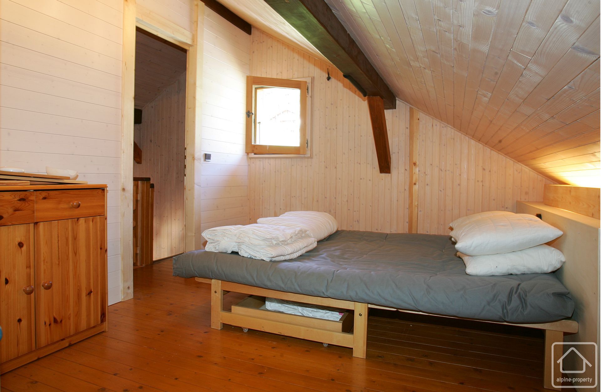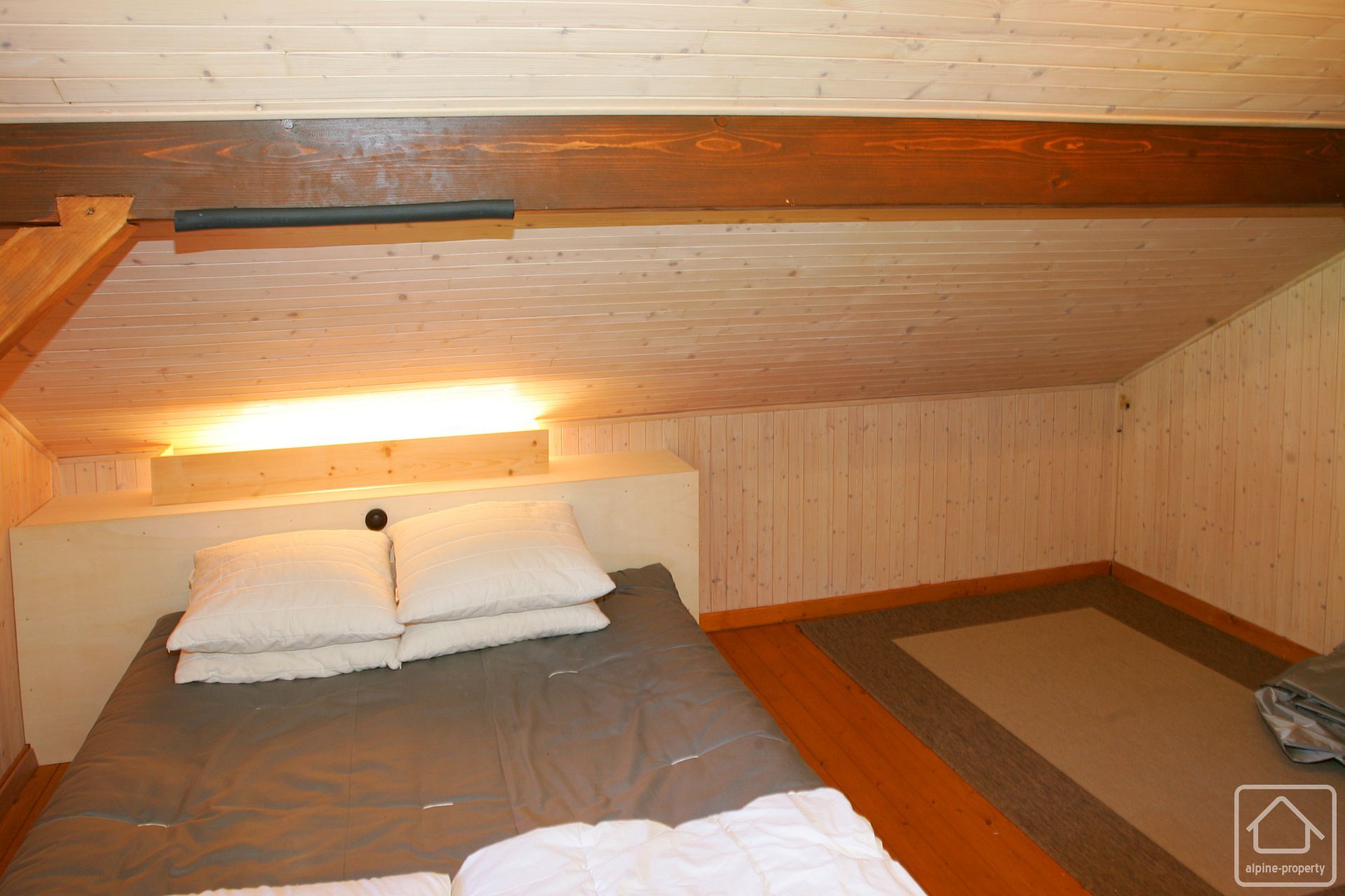 La charmante habitation de style alpin traditionnel occupe une surface d’environ 48 m². Ayant été entretenue avec soin, elle se présente en excellent état.