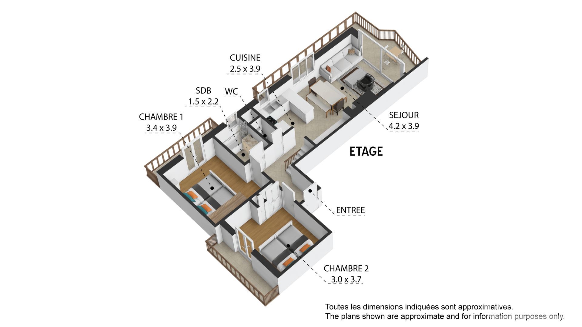 Cet appartement duplex de 87 m² bénéficie de vues spectaculaires sur le village et les montagnes autour, et possède balcon et terrasse pour bien en profiter !