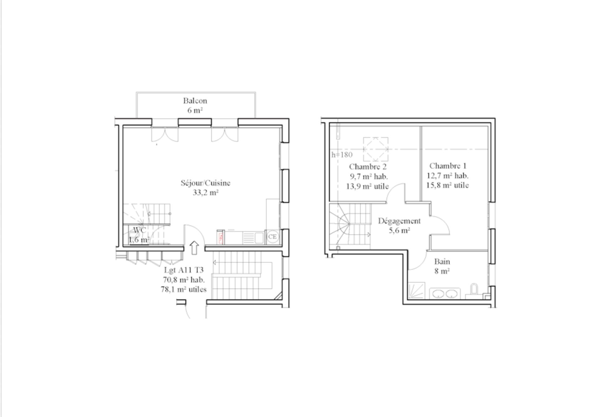 Les prix indiqués correspondent à l’achat de l’appartement en état brut avec travaux à réaliser par l’acquéreur. Une option clé en main (avec prix) peut être proposée sur demande. La surface habitable une fois terminé sera d’environ 78,10 m².