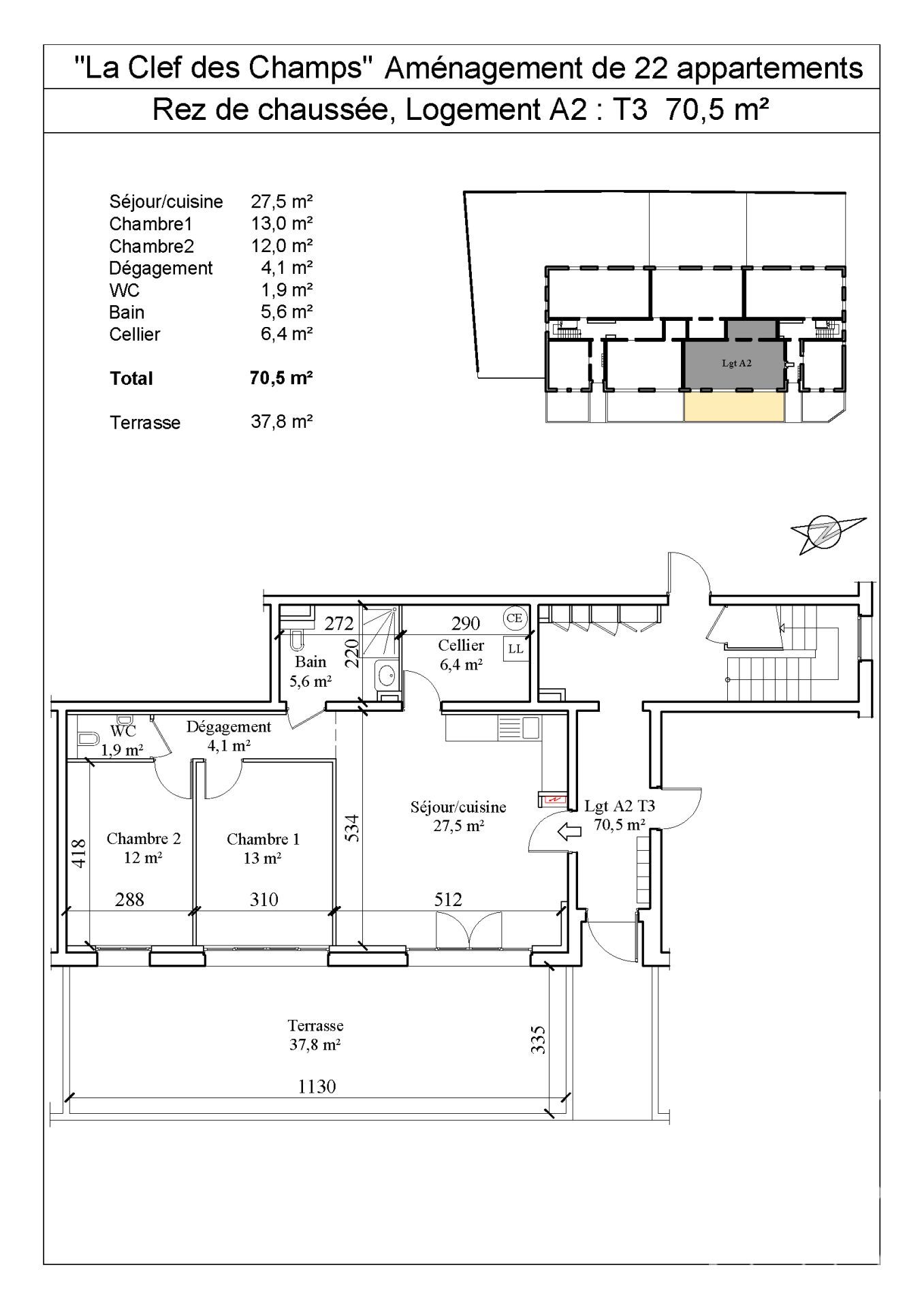 Les prix indiqués correspondent à l’achat de l’appartement en état brut avec travaux à réaliser par l’acquéreur. Une option clé en main (avec prix) peut être proposée sur demande. La surface habitable une fois terminé sera d’environ 70,50 m².