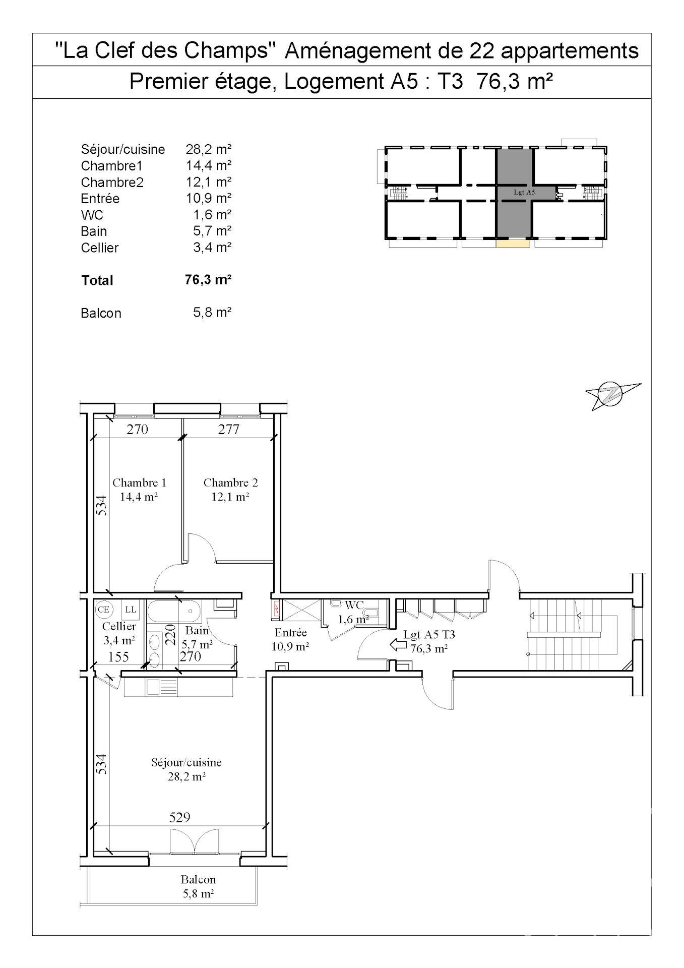 Les prix indiqués correspondent à l’achat de l’appartement en état brut avec travaux à réaliser par l’acquéreur. Une option clé en main (avec prix) peut être proposée sur demande. La surface habitable une fois terminé sera d’environ 76,30 m².