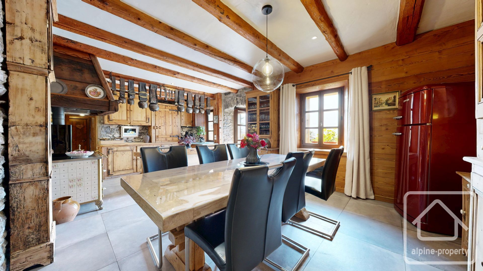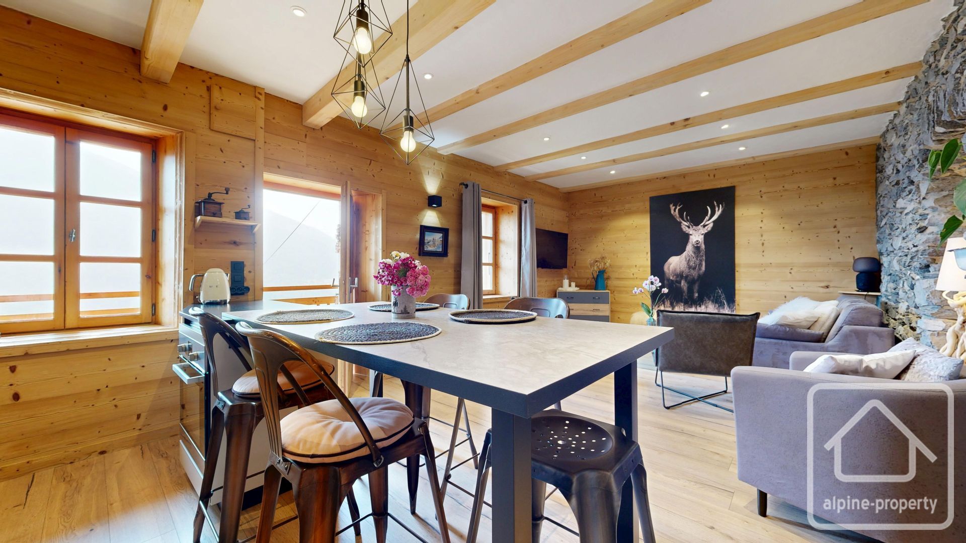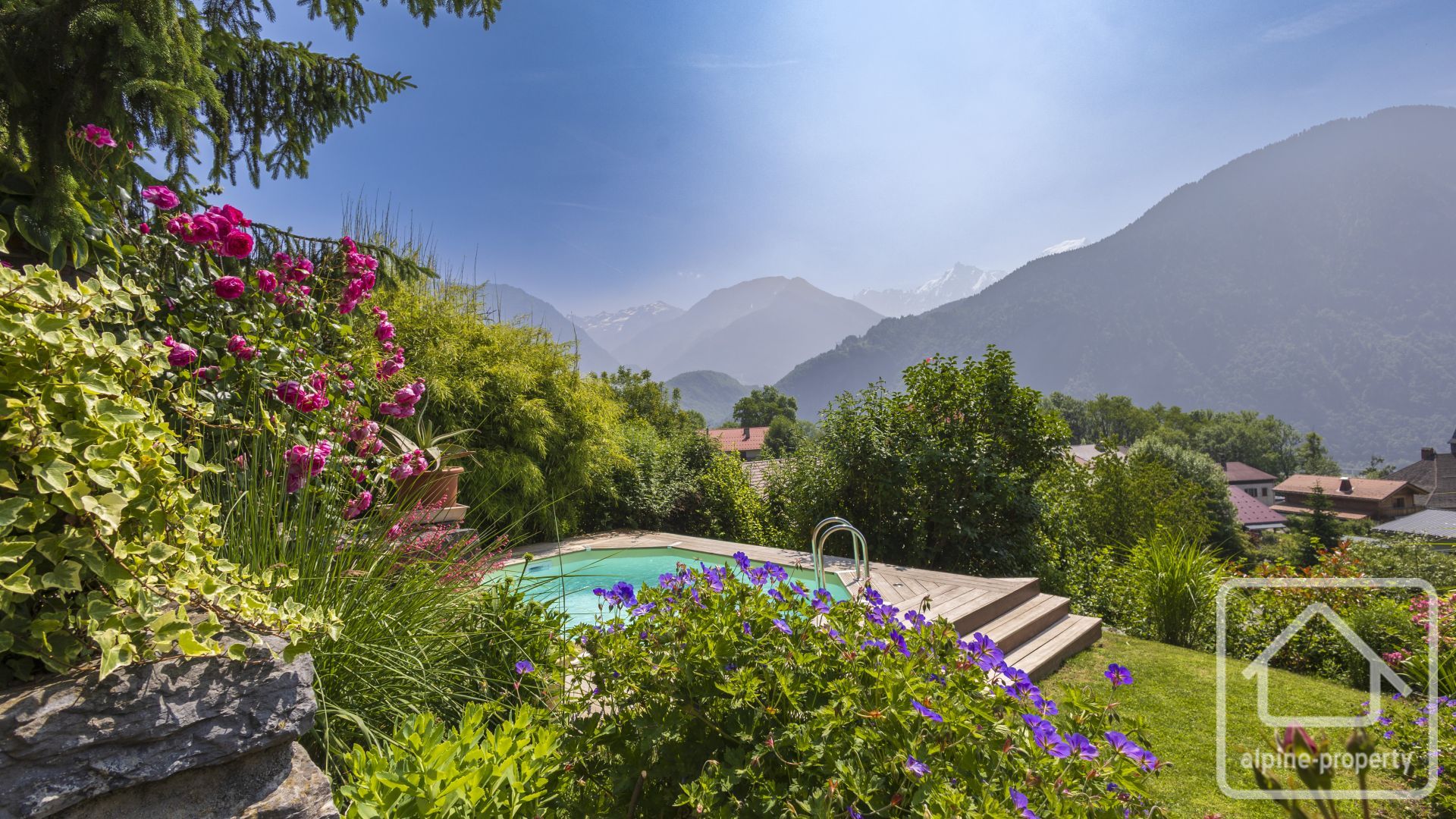 La propriété s’étend sur près de 2 000 m² de terrain et bénéficie d’une position dominante face au majestueux massif du Mont-Blanc, offrant de superbes vues panoramiques depuis sa vaste terrasse ensoleillée, s’étendant des sommets spectaculaires jusqu’aux alpages et aux pistes de ski de Combloux et Megève. Riche en caractère et entourée de nature, elle offre un véritable sentiment de refuge, où se rencontrent histoire, beauté et sérénité.