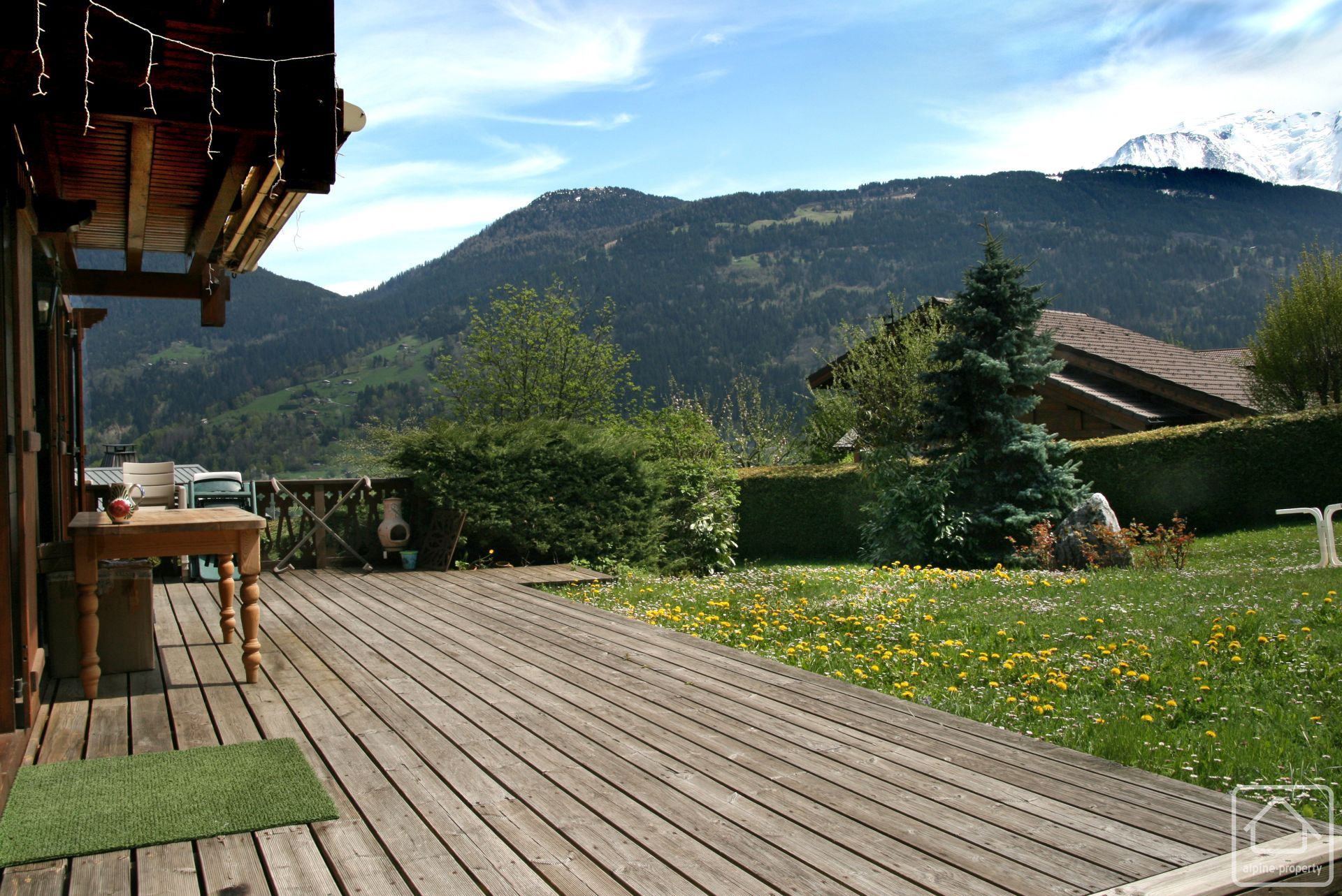 Ce chalet de six pièces occupe une position dominante au-dessus du village de Saint-Gervais. De par son exposition sud, le jardin bénéficie d’une excellente orientation doublée d’une sensationnelle vue directe sur le mont Blanc.