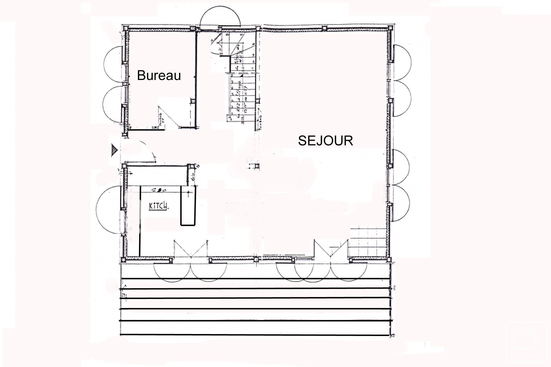 L'habitation se développe sur trois niveaux. La pièce principale donne directement sur la terrasse en bois et le jardin, pour pouvoir profiter de la vue et prendre les repas en plein air.