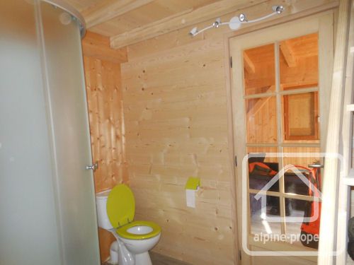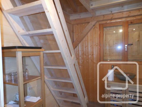 Comme pour la plupart des chalets, l'accès principal et la pièce à vivre se trouvent à l'étage intermédiaire. On entre par une véranda qui mène aux pièces principales (cuisine, salle à manger et petit salon) suivies d'une chambre, de toilettes et d'une salle d'eau avec douche, lavabo et plomberie pour un lave-linge.