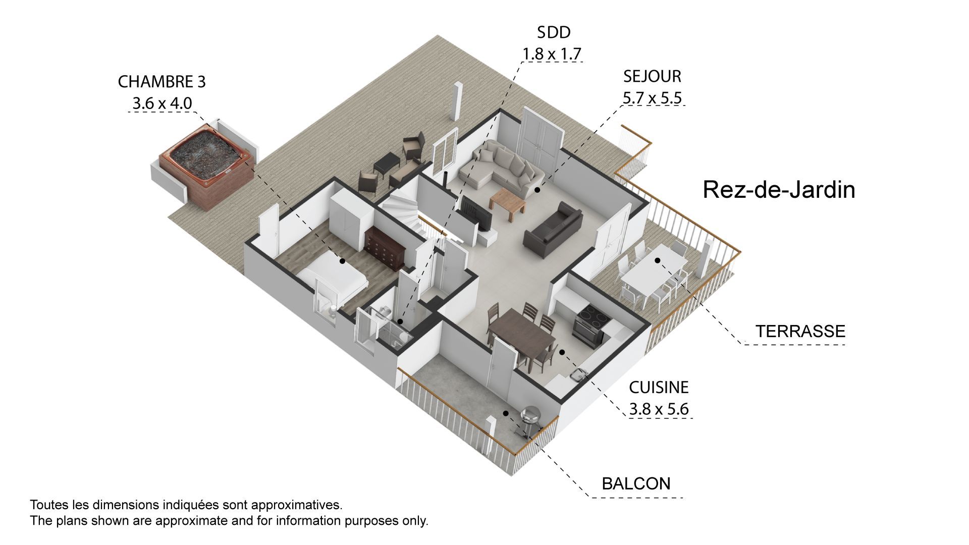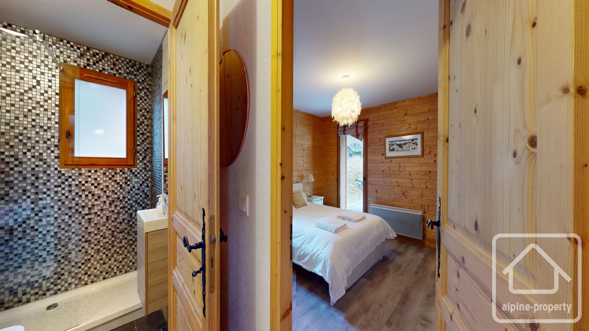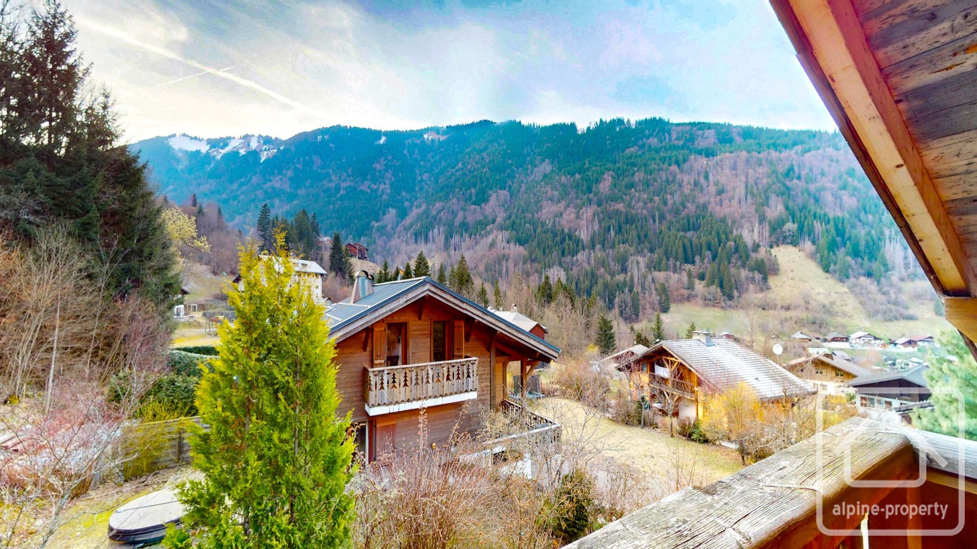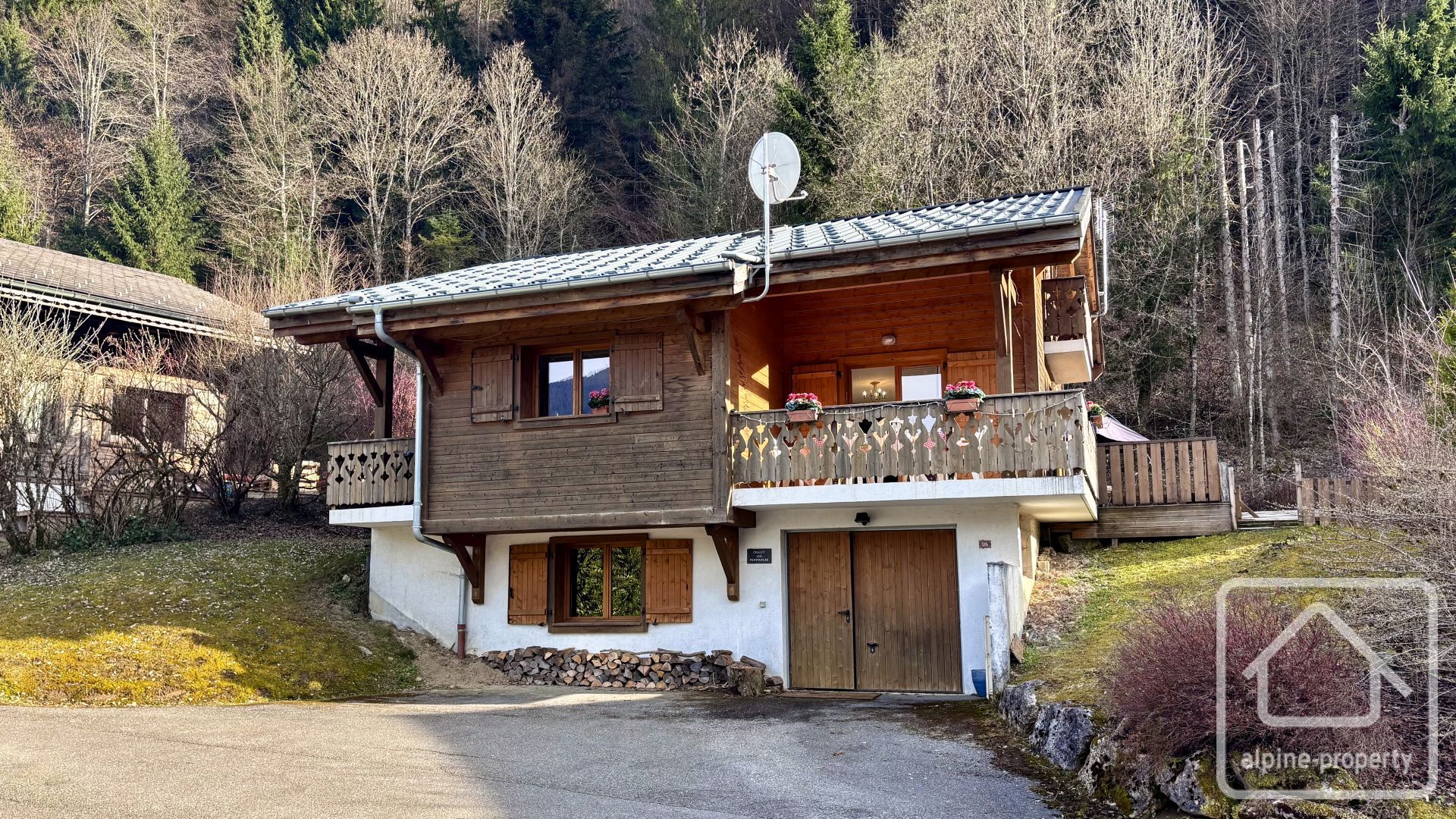 Sur une parcelle de 764 m², le chalet profite d’espaces verts privés et d’une très belle terrasse avec emplacement pour un jacuzzi.