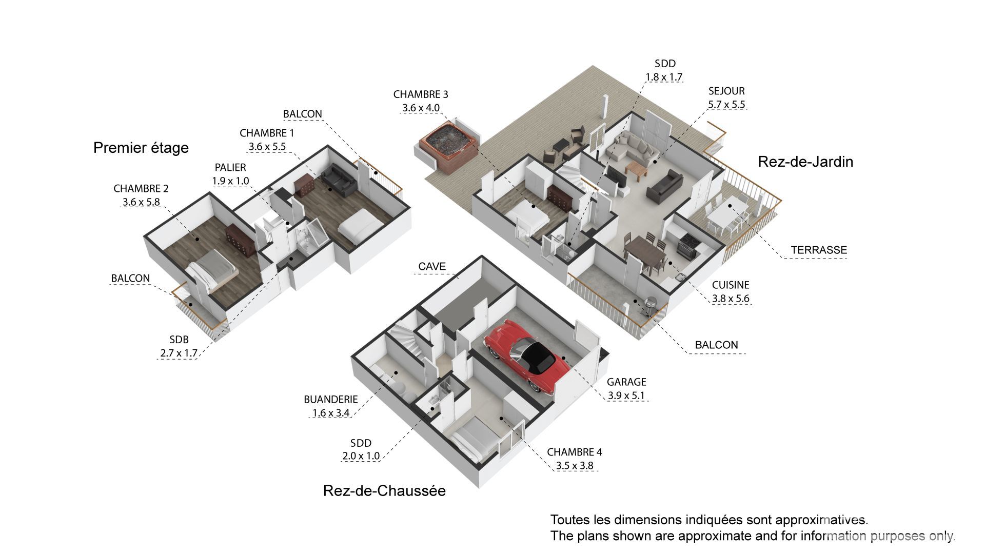A l’étage, 2 chambres supplémentaires avec chacune un balcon, ainsi qu’une salle de bains.