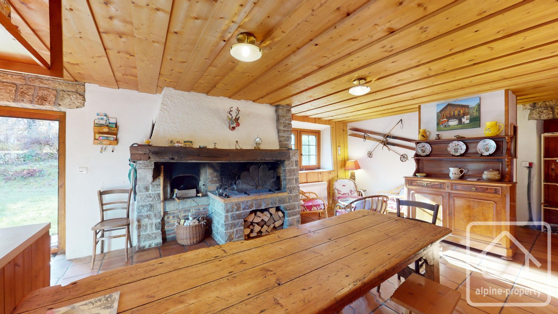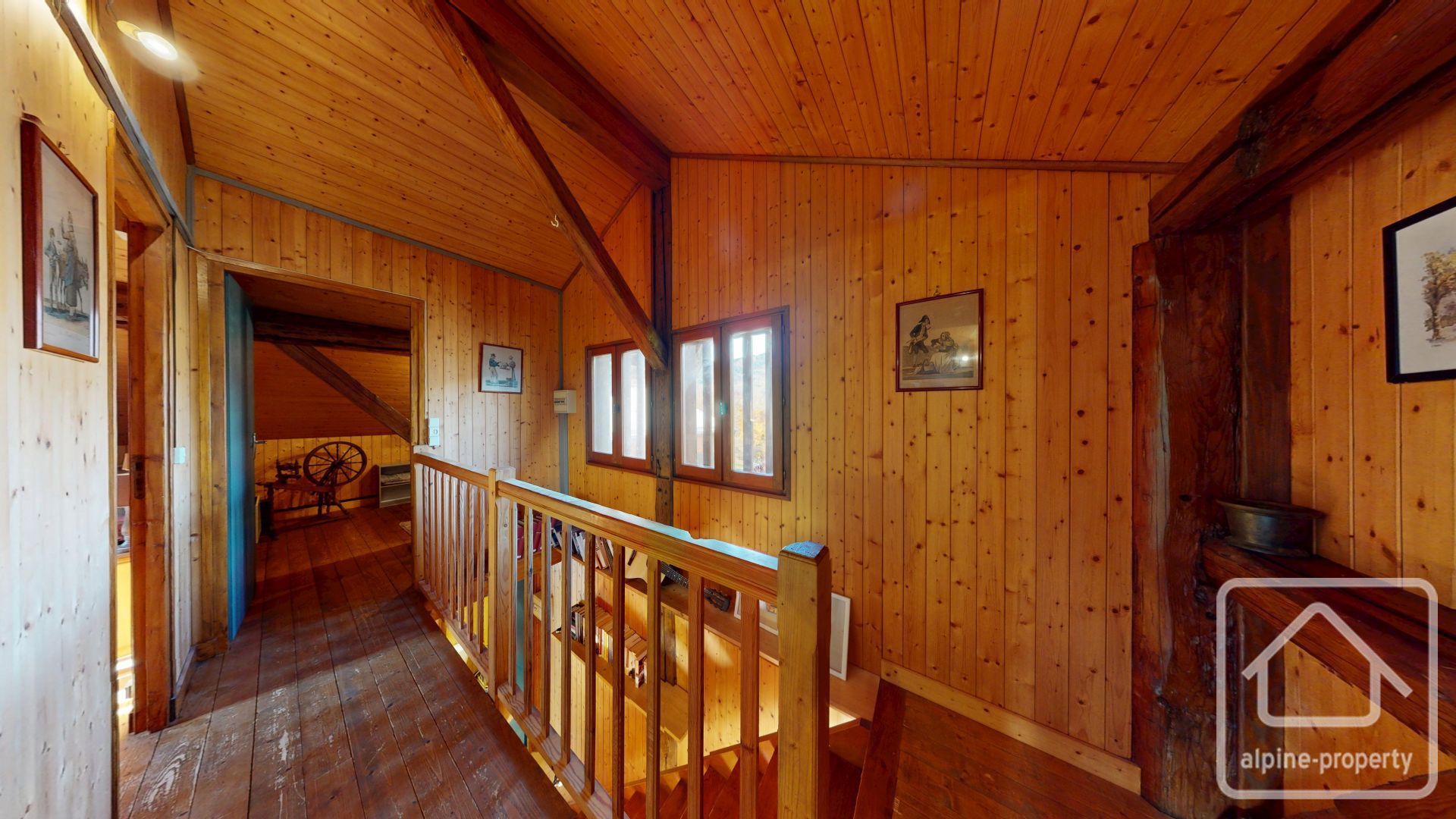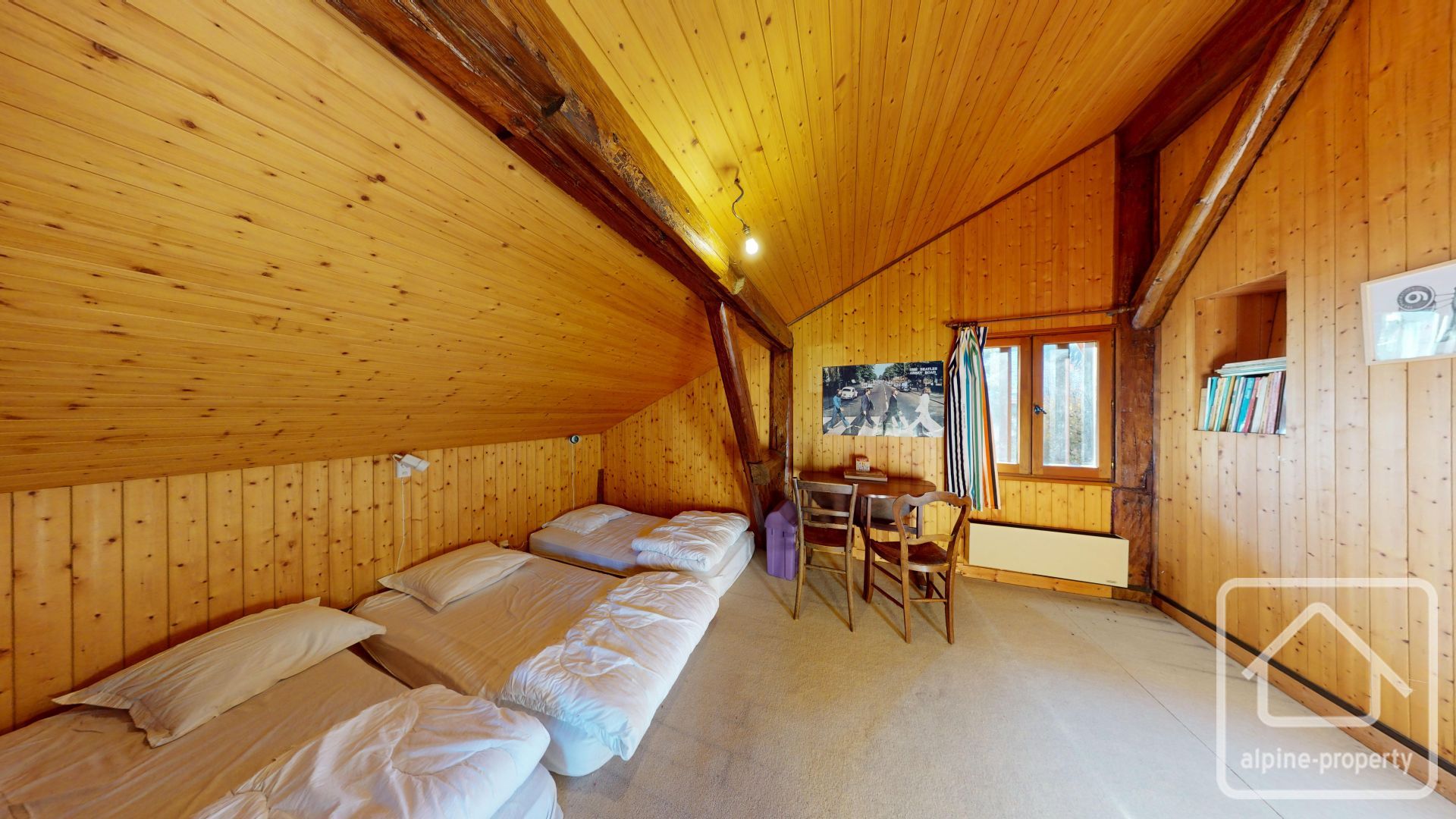 La maison actuelle, entièrement rénovée en 1981, offre environ 101 m² de surface habitable et est actuellement agencée sur trois niveaux. Au rez-de-chaussée, un espace de vie chaleureux et accueillant comprend une cuisine ouverte et une salle à manger avec une cheminée traditionnelle et un four à pain d’époque — un clin d’œil charmant à son passé agricole. On trouve également à ce niveau un WC indépendant et un espace de rangement. À l’étage, le chalet dispose de trois chambres, d’un balcon exposé sud, d’une salle d’eau, d’un WC indépendant et d’un espace de rangement supplémentaire, tandis que le dernier étage offre deux chambres supplémentaires et une seconde salle d’eau.