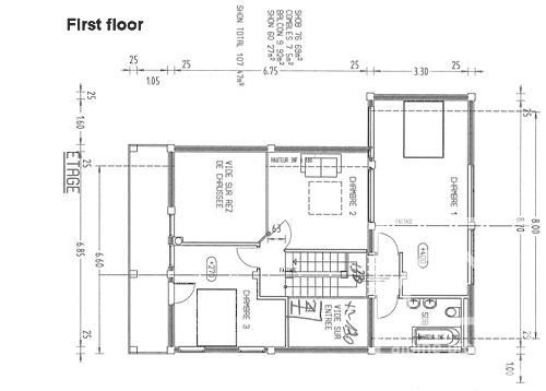 Les chalets individuels peuvent être configurés selon vos besoins/souhaits. La proposition faite sur ce site web correspond à un chalet de 3 chambres ayant une superficie de 108 m². L'agencement proposé est comme suit :