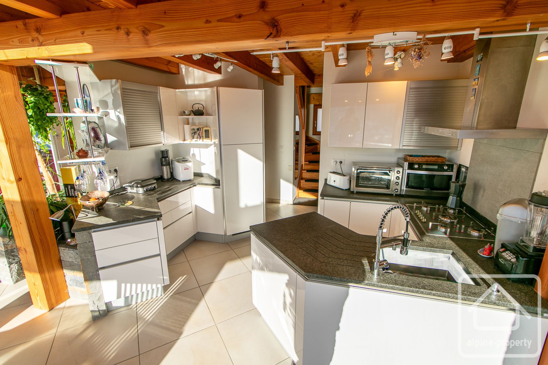 Sur le plan écologique et énergétique, la propriété est particulièrement bien équipée. Le chauffage est assuré par un système combiné haute performance intégrant des panneaux solaires, une pompe à échange thermique et un puit canadien géothermique, garantissant un excellent confort thermique tout en limitant la consommation énergétique. Le chalet bénéficie également de volets électriques dans l’ensemble des espaces, renforçant l’isolation, le confort et la sécurité.