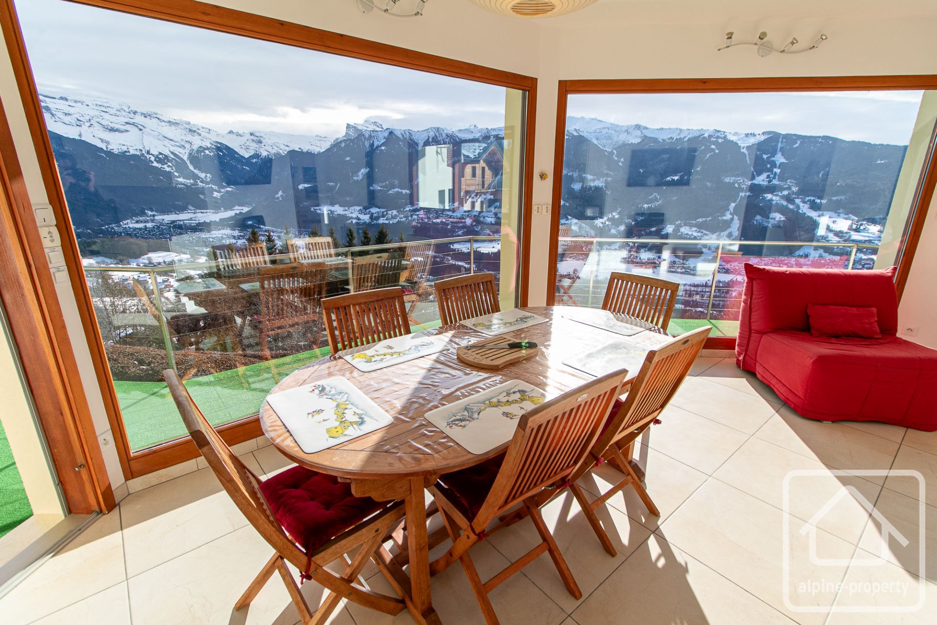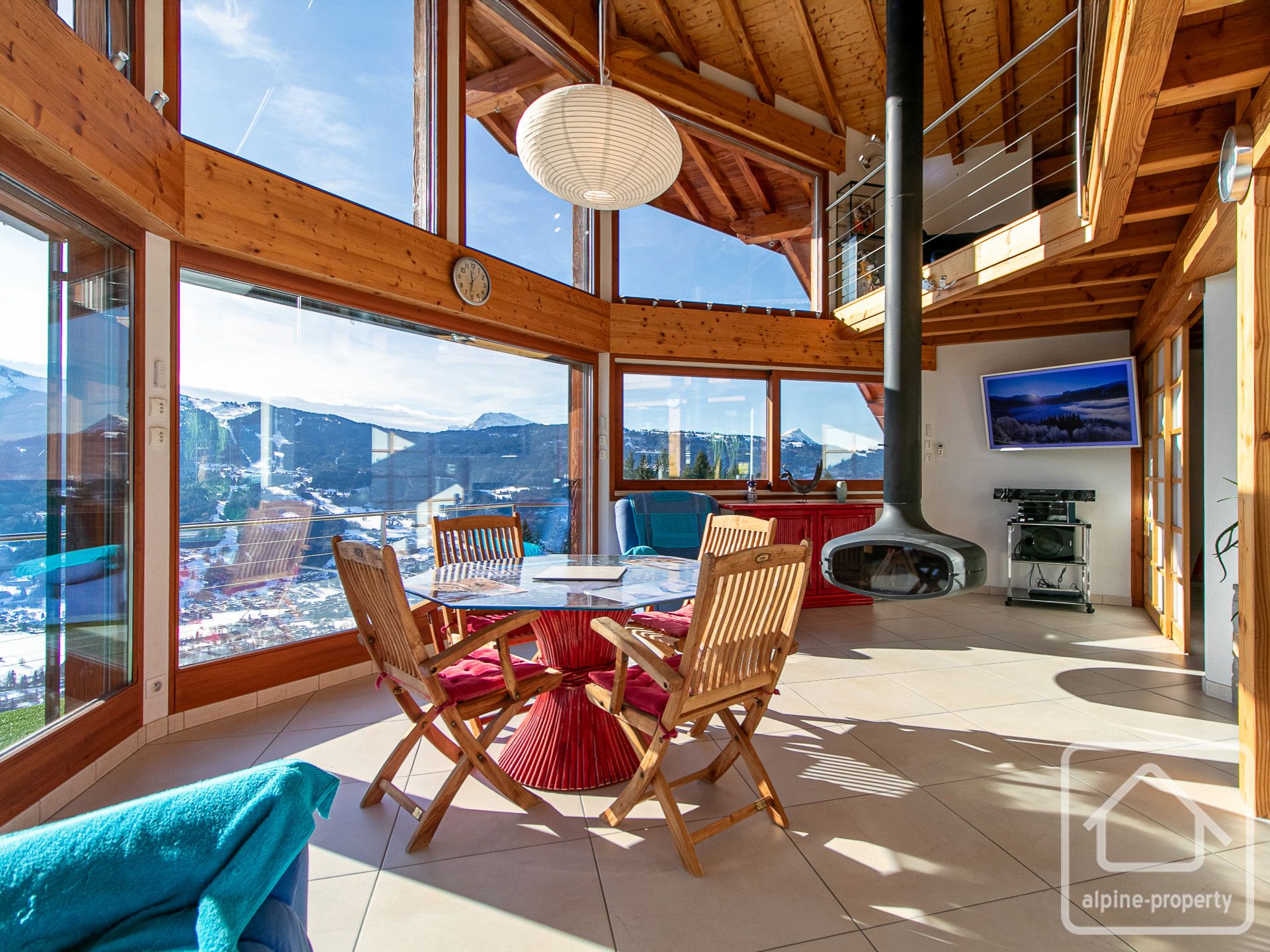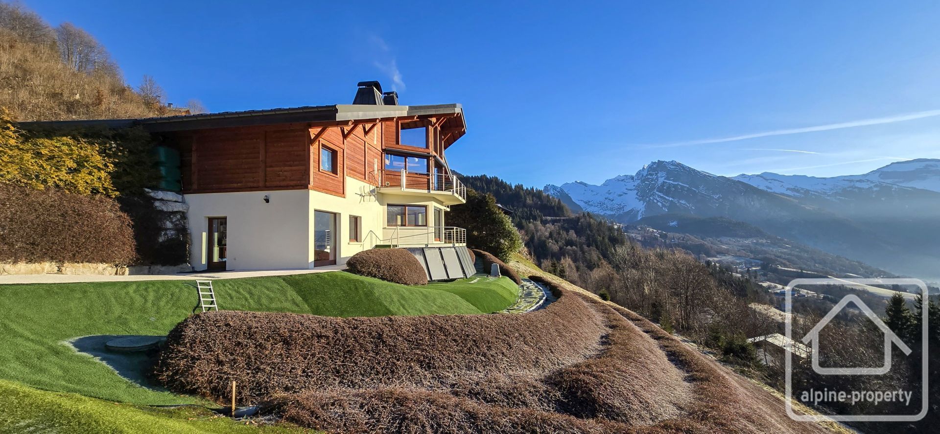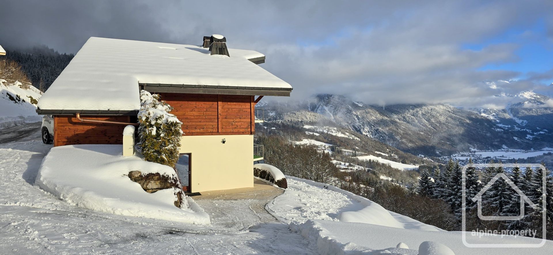 Le Chalet Belvédère est un chalet contemporain remarquable, entièrement conçu autour de son panorama exceptionnel, offrant des vues spectaculaires et totalement dégagées sur la vallée du Giffre, les massifs environnants et jusqu’au Mont-Blanc. Construit en 2008, il bénéficie d’un emplacement paisible à Verchaix, sur une généreuse parcelle de 1 781 m², et associe une architecture audacieuse à des systèmes modernes et écoénergétiques. Chaque niveau a été soigneusement pensé afin de maximiser la lumière naturelle, les volumes et les panoramas saisissants, créant un lieu de vie à la fois spacieux et intimement connecté à son environnement alpin.