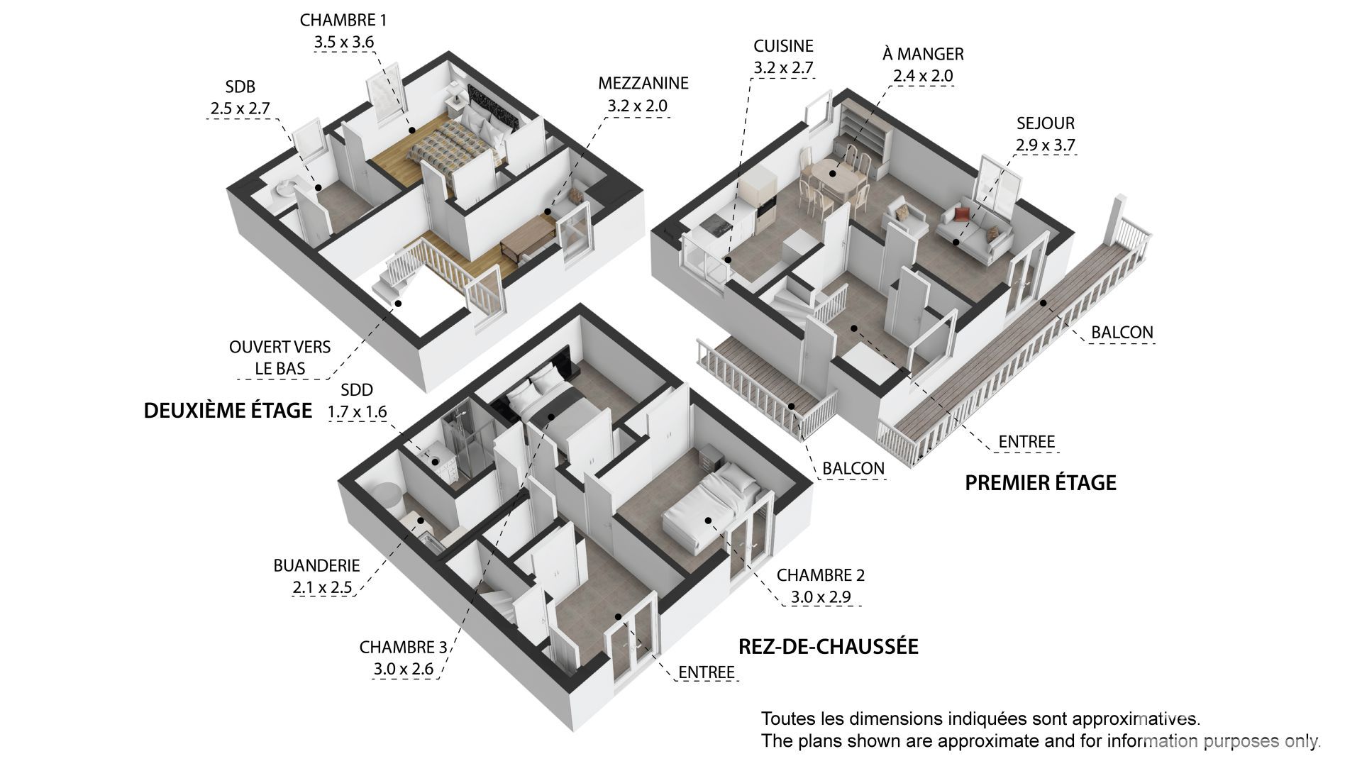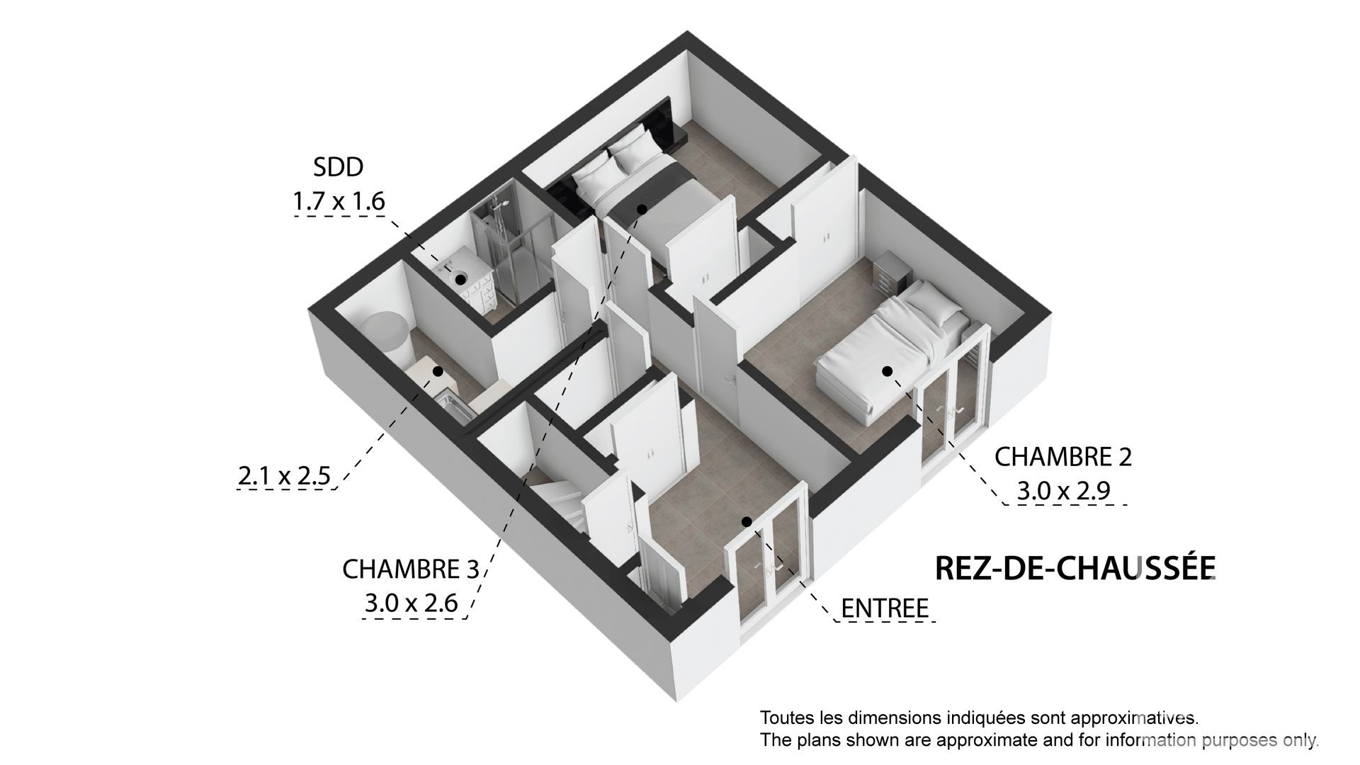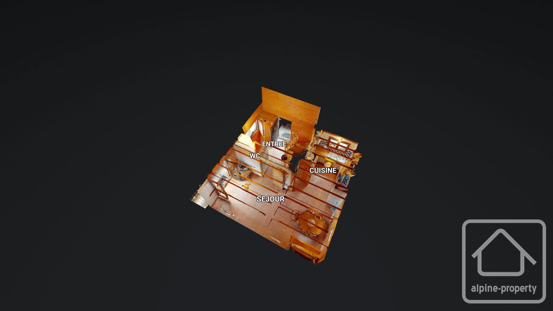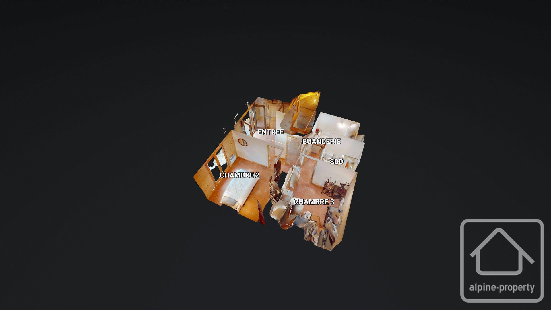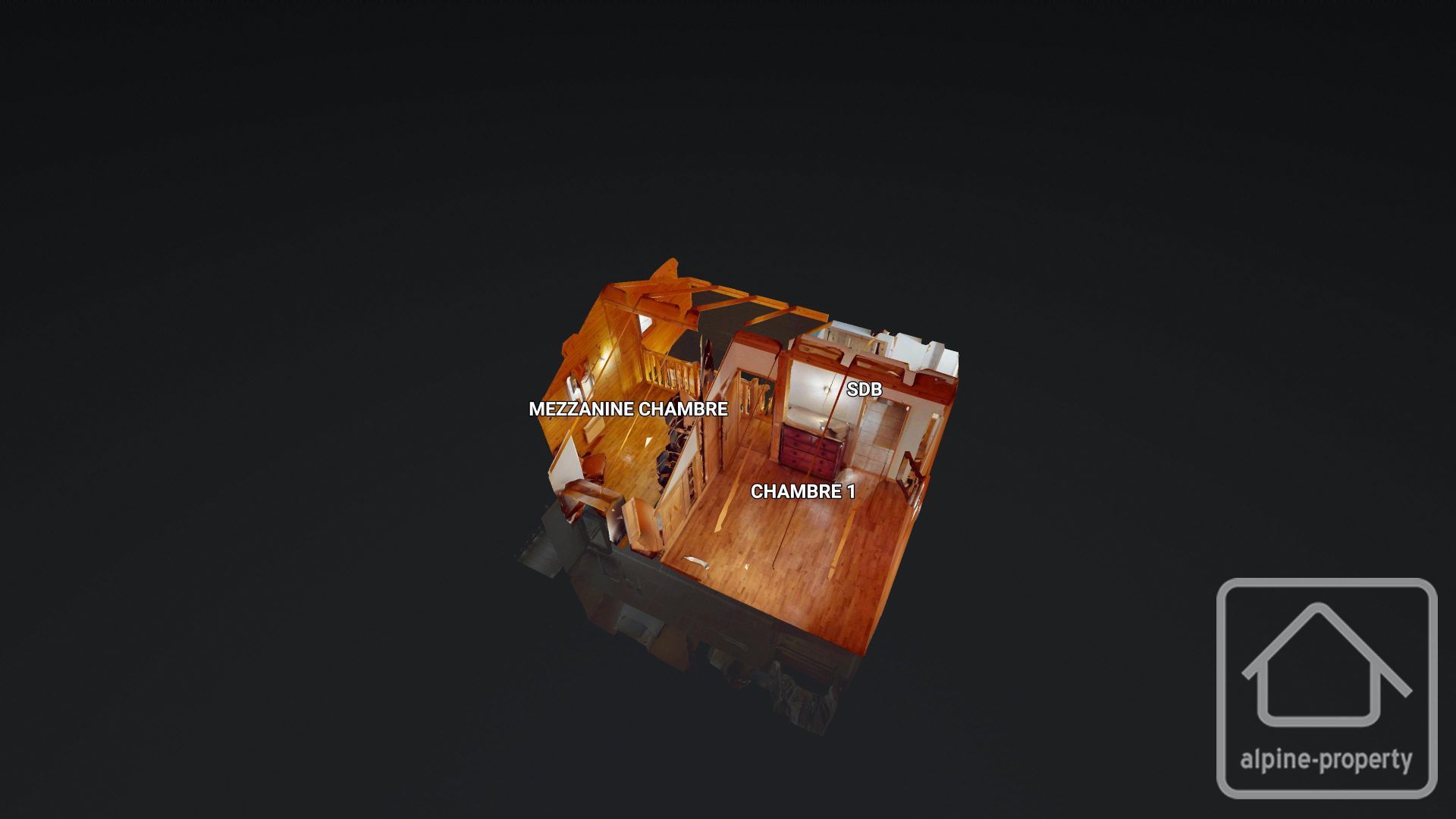 Le chalet est réparti sur trois niveaux et offre des espaces de vie lumineux et bien agencés. Au rez-de-jardin, une entrée mène à une chambre confortable avec rangements intégrés, une salle d’eau avec WC, une buanderie, un placard sous l’escalier et une pièce polyvalente actuellement utilisée comme espace de rangement mais pouvant également servir de chambre supplémentaire. Toutes les pièces de ce niveau sont reliées à l’étage principal par un escalier intérieur.